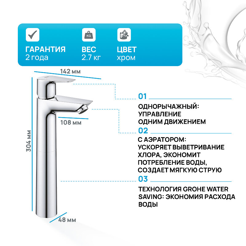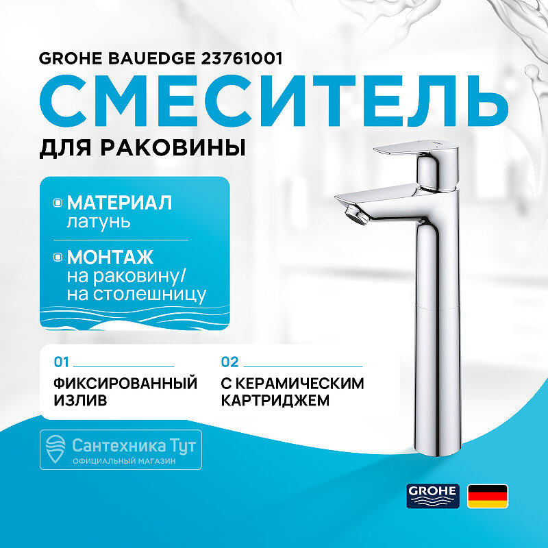 Смеситель для раковины Grohe BauEdge 23761001 размер XL хром