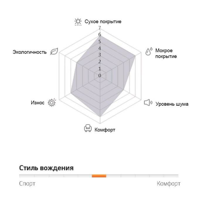 | Плюсы: | Тихая, цепкая, достаточно мягкая, хорошо сопротивляется аквапланированию |