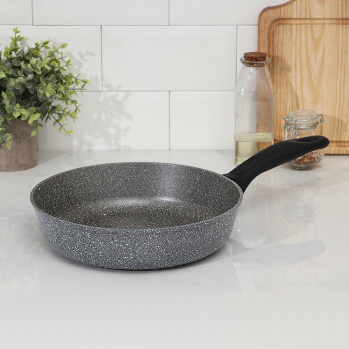 Сковорода Доляна "Марбл", d:26 см, пластиковая ручка, антипригарное покрытие, цвет серый интересное: