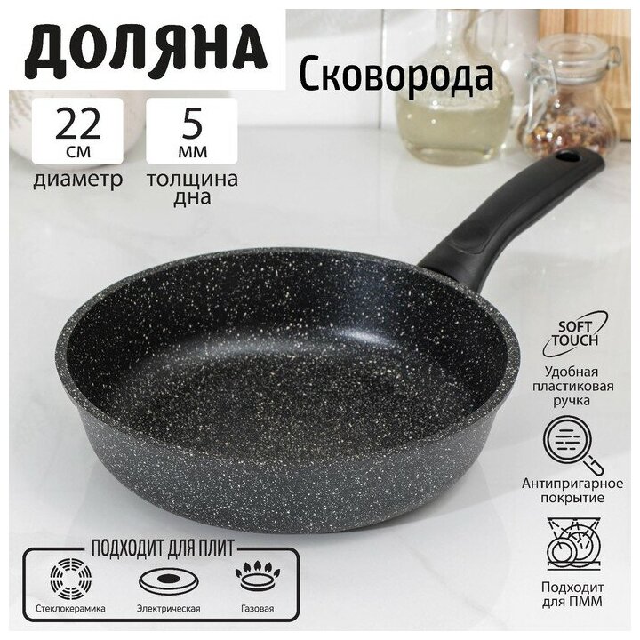 Сковорода Доляна «Элит», d=22 см, антипригарное покрытие, пластиковая ручка, цвет чёрный интересное: