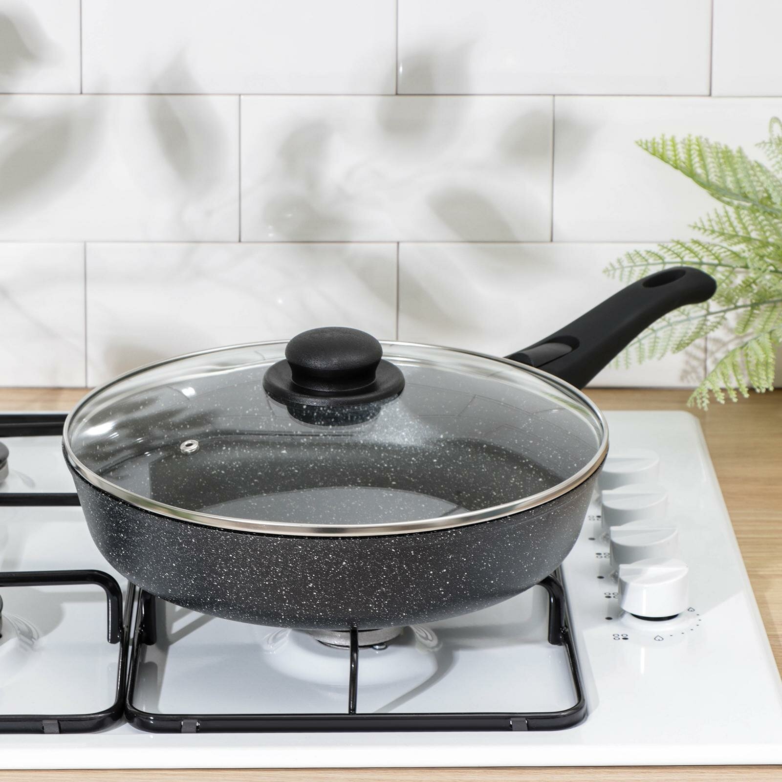 Купить Сковорода Доляна «Элит», d=28 см, антипригарное покрытие, пластиковая ручка, стеклянная крышка