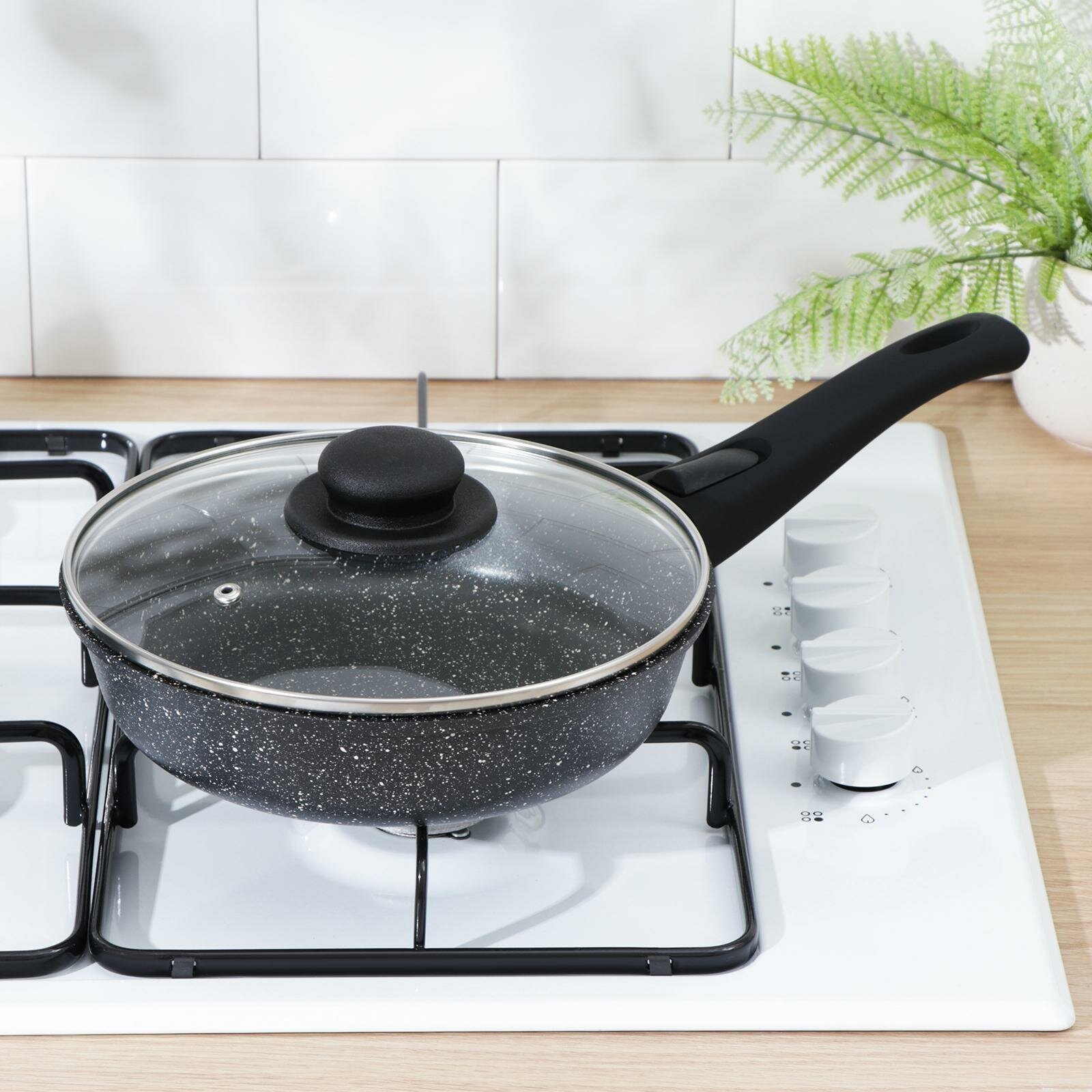 Купить Сковорода Доляна «Элит», d=22 см, съёмная ручка, стеклянная крышка, антипригарное покрытие, цвет чёрный