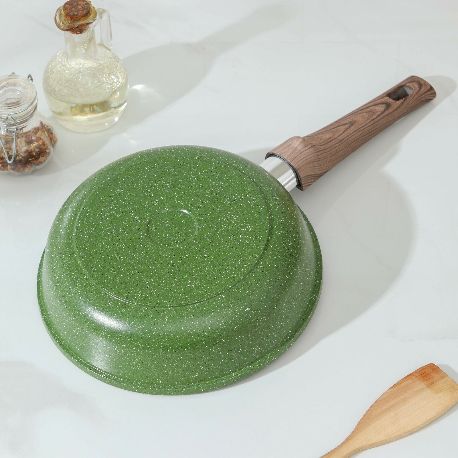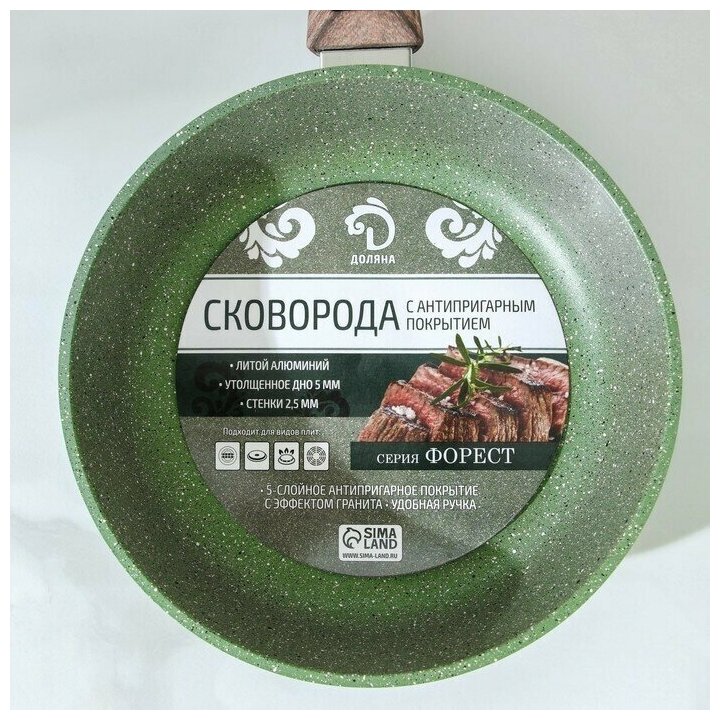 Купить Сковорода Доляна «Форест», d=22 см, стеклянная крышка, съёмная ручка, антипригарное покрытие, цвет зелёный