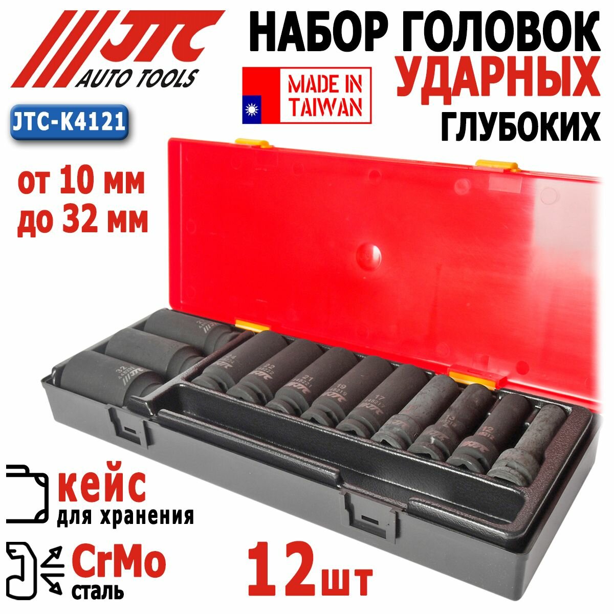 JTC-K4121 JTC Набор головок торцевых 1/2" 6-ти гранных 10-32мм ударных глубоких в кейсе 12 предметов