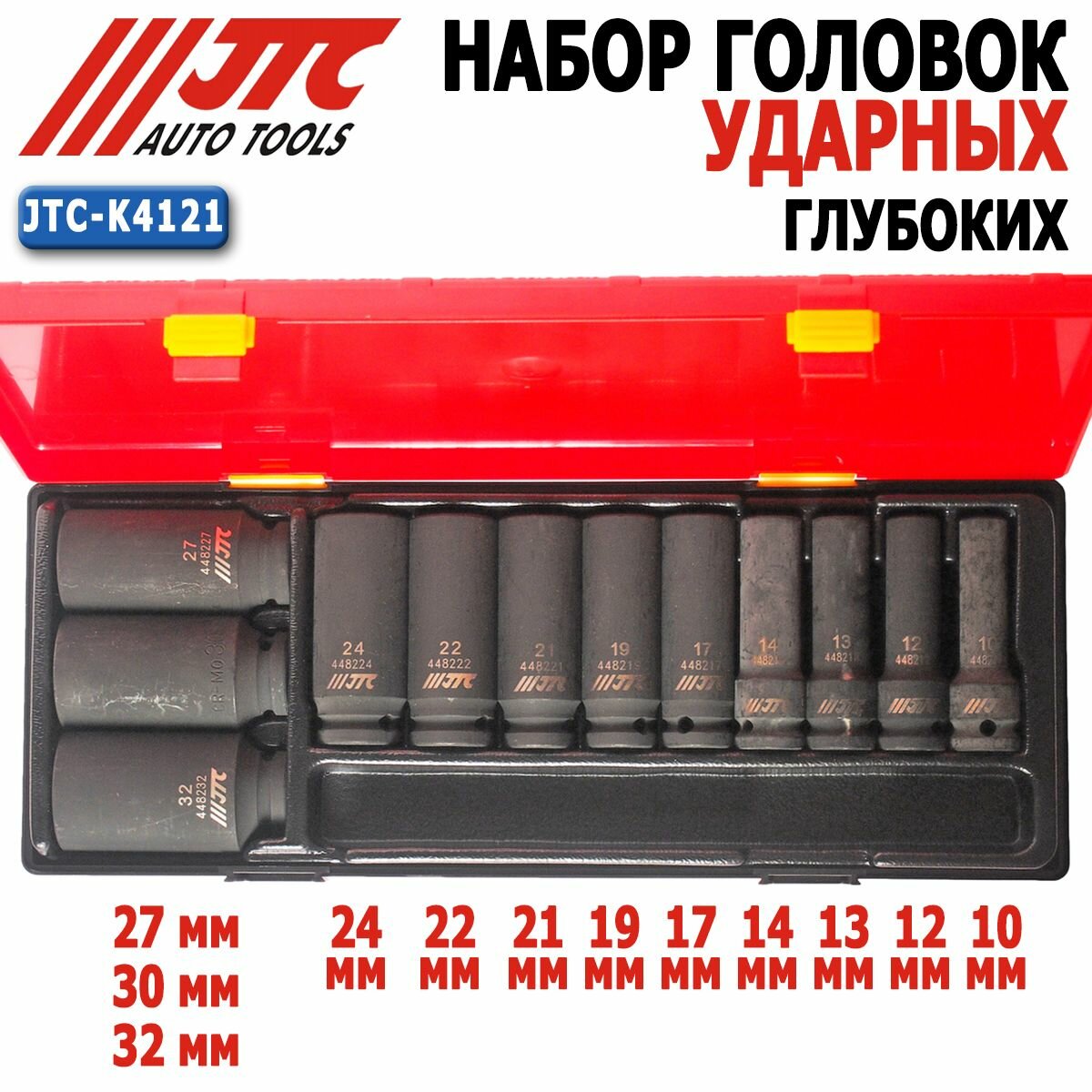 Набор головок торцевых глубоких ударных 6-гранных 1/2 10-32мм 12шт JTC-K4121