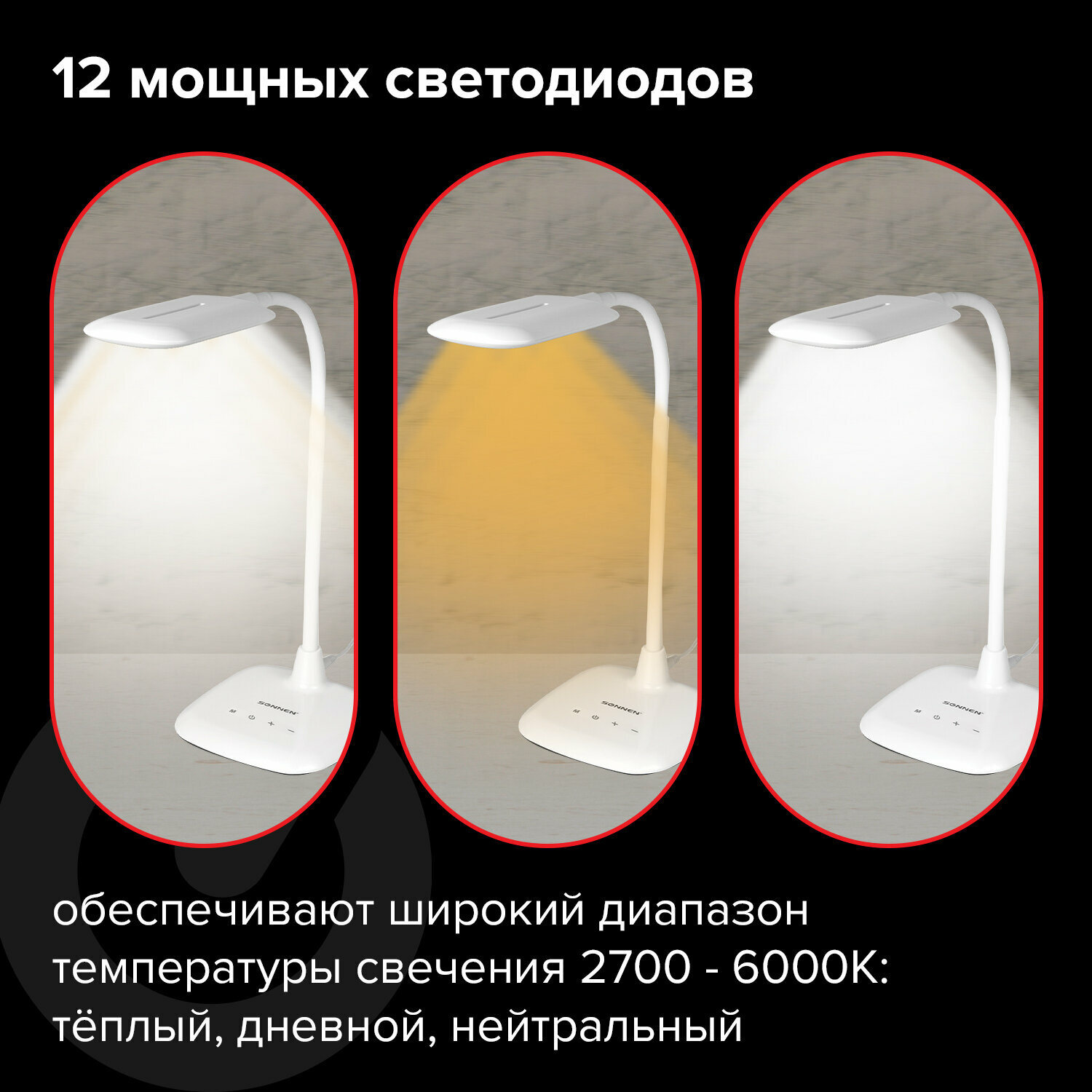 Светильник настольный Sonnen BR-819A, на подставке, светодиодный, 8 Вт, белый