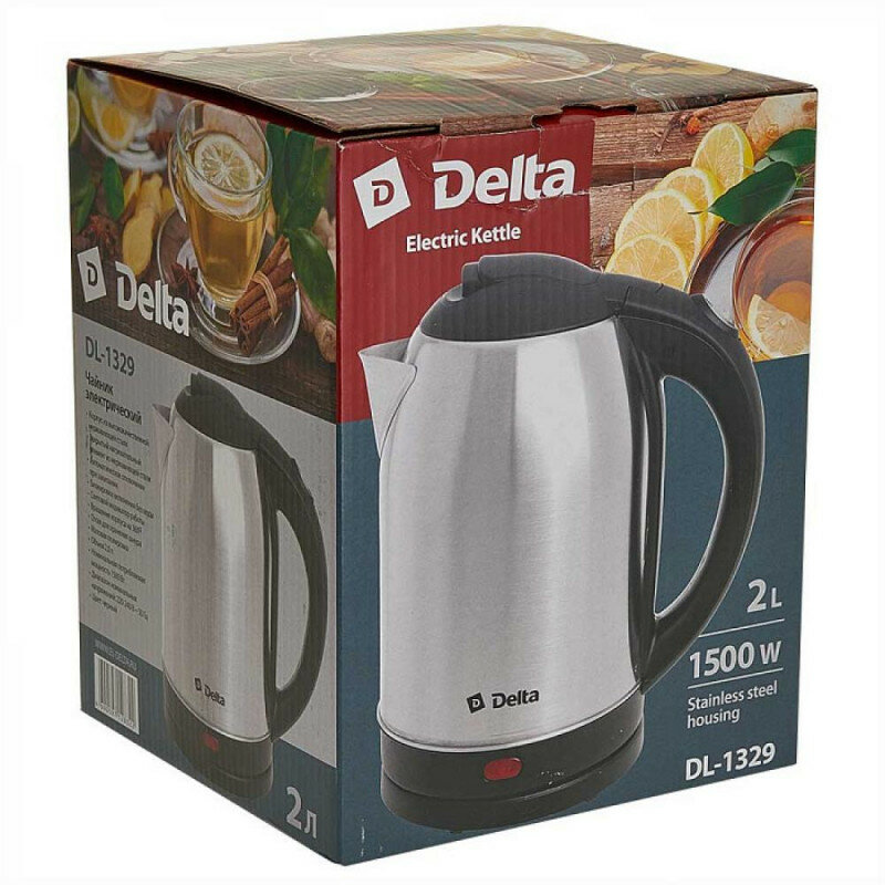 Электрочайник DELTA DL-1329 корпус из высококачественной экологически чистой нержавеющей стали: мощность мощность 1500Вт объем 2 литра