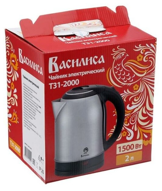 Электрочайник василиса Т31-2000 нерж/черный: мощность 2000 Вт объем 2 литра
