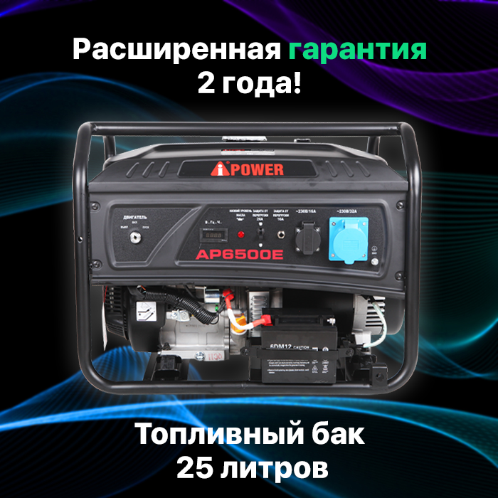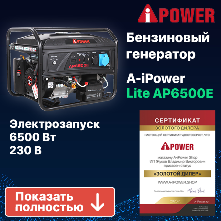 Комплект Бензиновый генератор A-iPower Lite AP6500E с электростартером + Колеса и ручки (20207К) интересное: