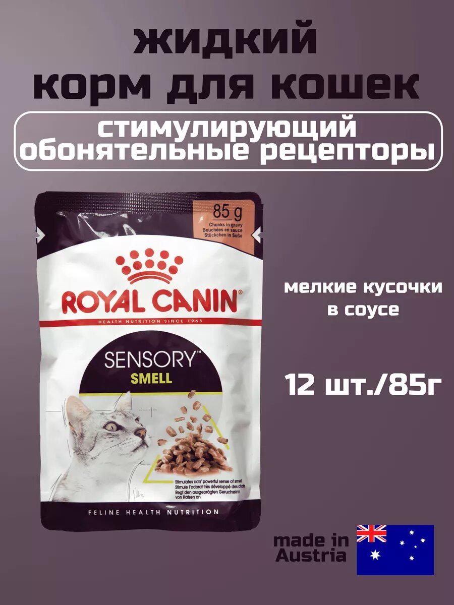 Влажный корм для кошек Royal Canin Sensory Smell (сенсори запах), стимулирующий обонятельные рецепторы , кусочки в соусе, пауч 85 г х 12 шт