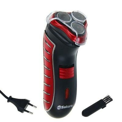 SAKURA Электробритва Sakura SA-5414RB, 3 Вт, сеточная, 3 плавающие головки, триммер, АКБ, красная