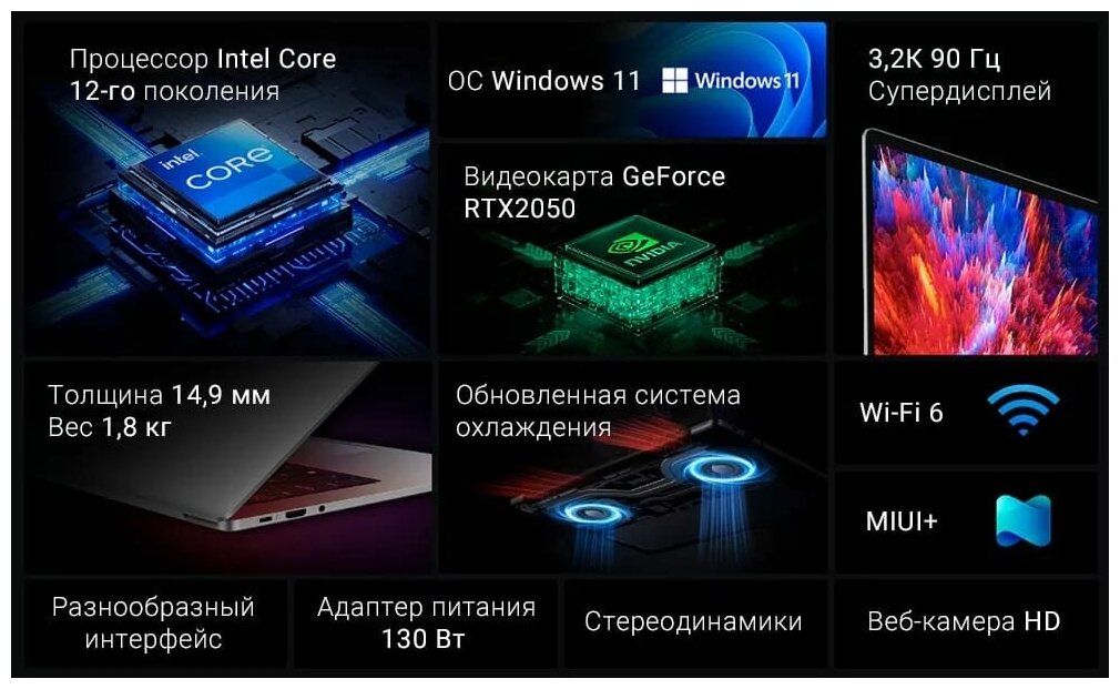 RedmiBook Pro 15 2022 i5-12650H 16GB/512GB RTX2050 (JYU4462CN) интересное: