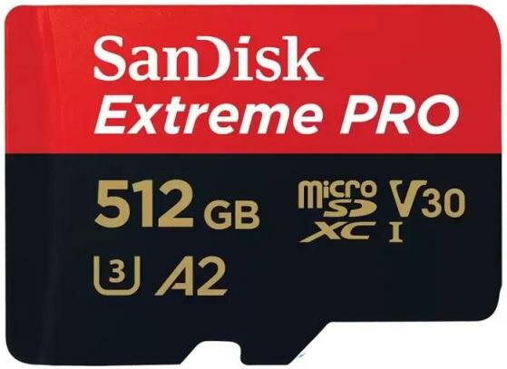 Карта памяти SanDisk microSDXC 512 ГБ Class 10, V30, A2, UHS-I U3, адаптер на SD, 1 шт.