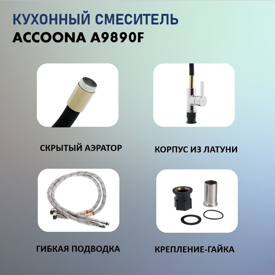 Accoona Cмеситель для кухни Accoona А9890F, однорычажный, силиконовый излив, черный/хром
