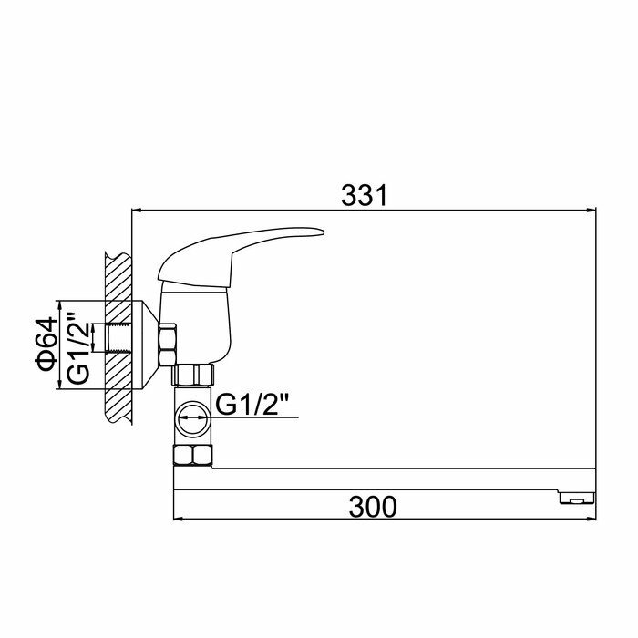 Cмеситель для ванны A7040, однорычажный, силумин