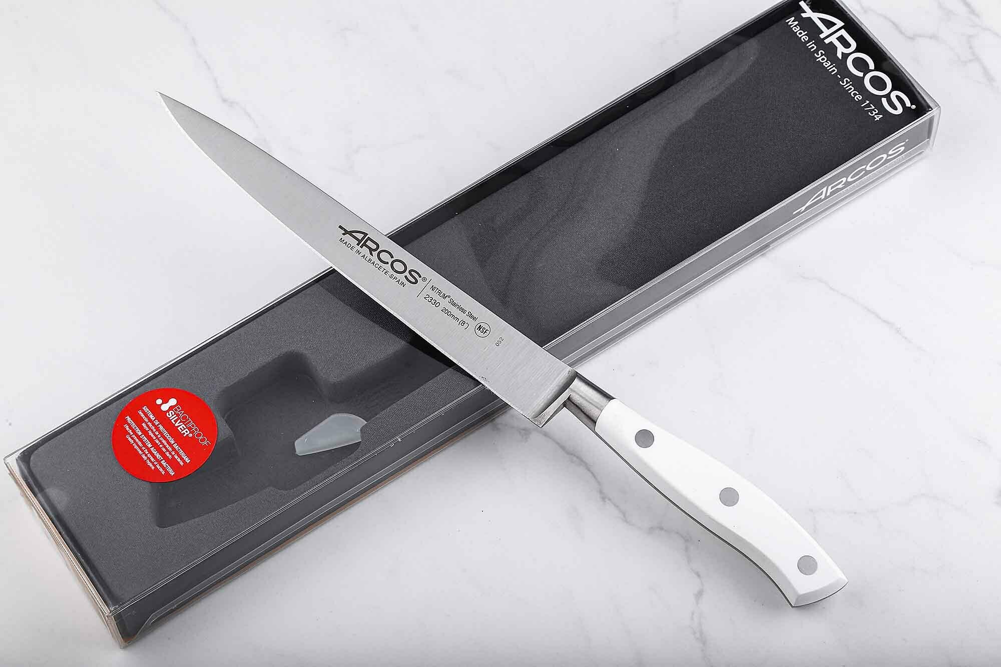 Нож филейный из кованой высокоуглеродистой нержавеющей стали, 20 см, пластиковая рукоять, белый, серия Riviera Blanc, Arcos, 233024W