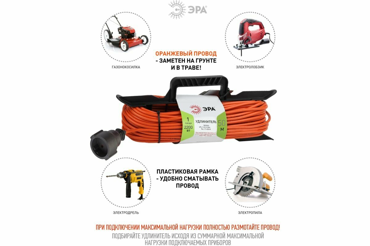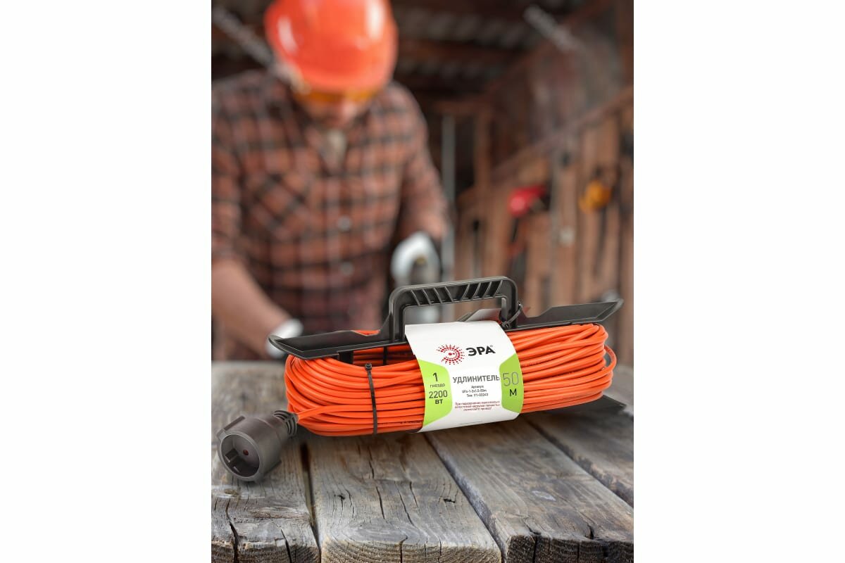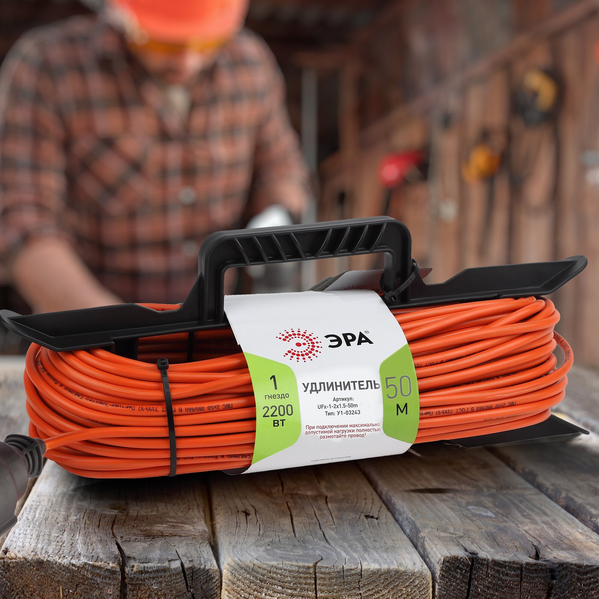 Удлинитель силовой Эра UFx-1-2x1.5-50m-IP44, розеток 1шт, 2x1.5 кв.мм, 10A, 50м, ПВС, без катушки, о