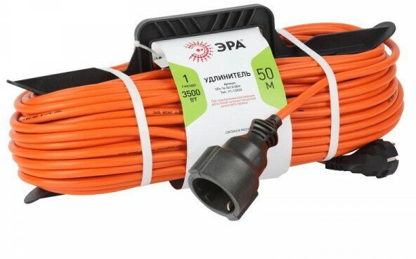 Удлинитель силовой Эра UFx-1-2x1.5-50m-IP44, розеток 1шт, 2x1.5 кв.мм, 10A, 50м, ПВС, без катушки, о