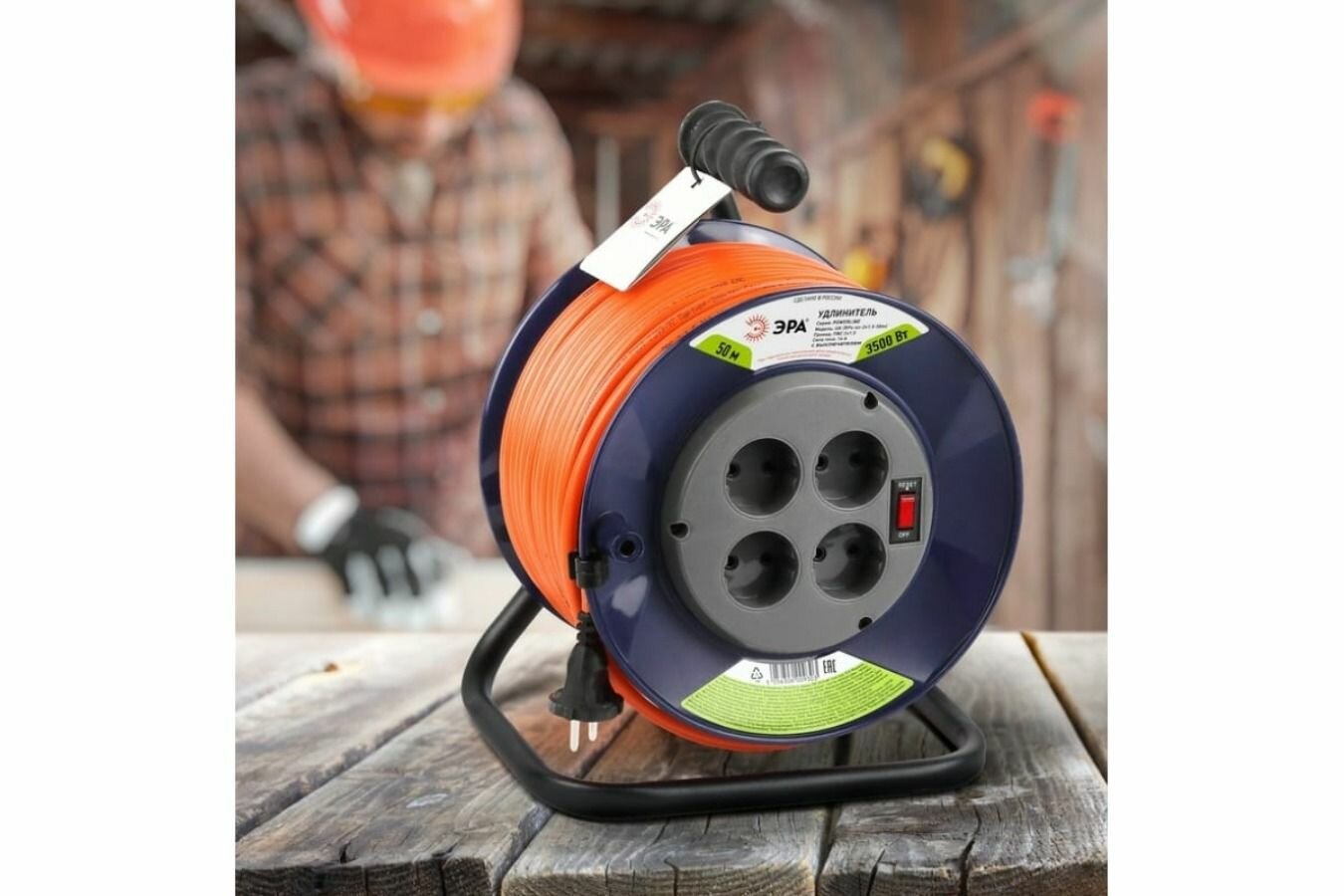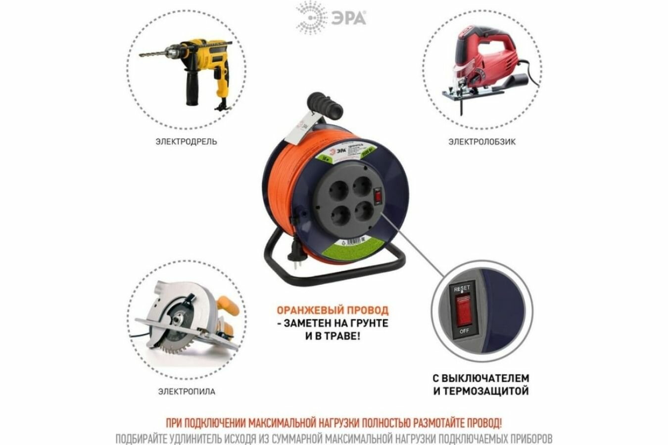 Удлинитель строительный силовой Эра RPx-4es-3х0.75-30m на катушке с заземлением и выключателем 30 метров 4 розетки 6А