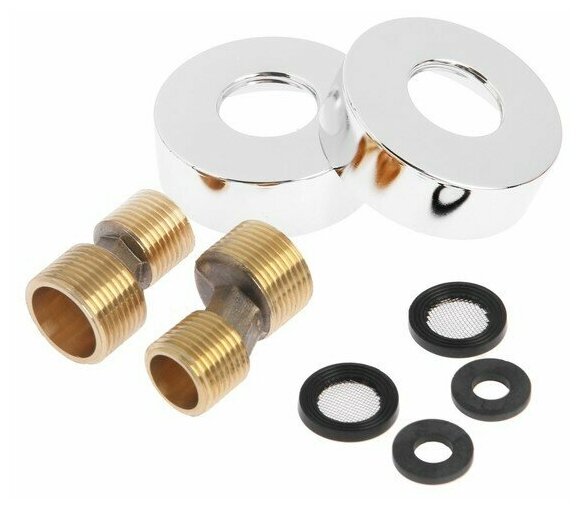| Комплектация | Смеситель / два эксцентрика с отражателями / душевой шланг / лейка / держатель для лейки на стену / излив |