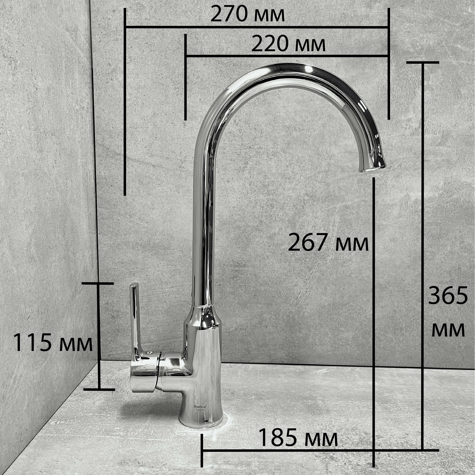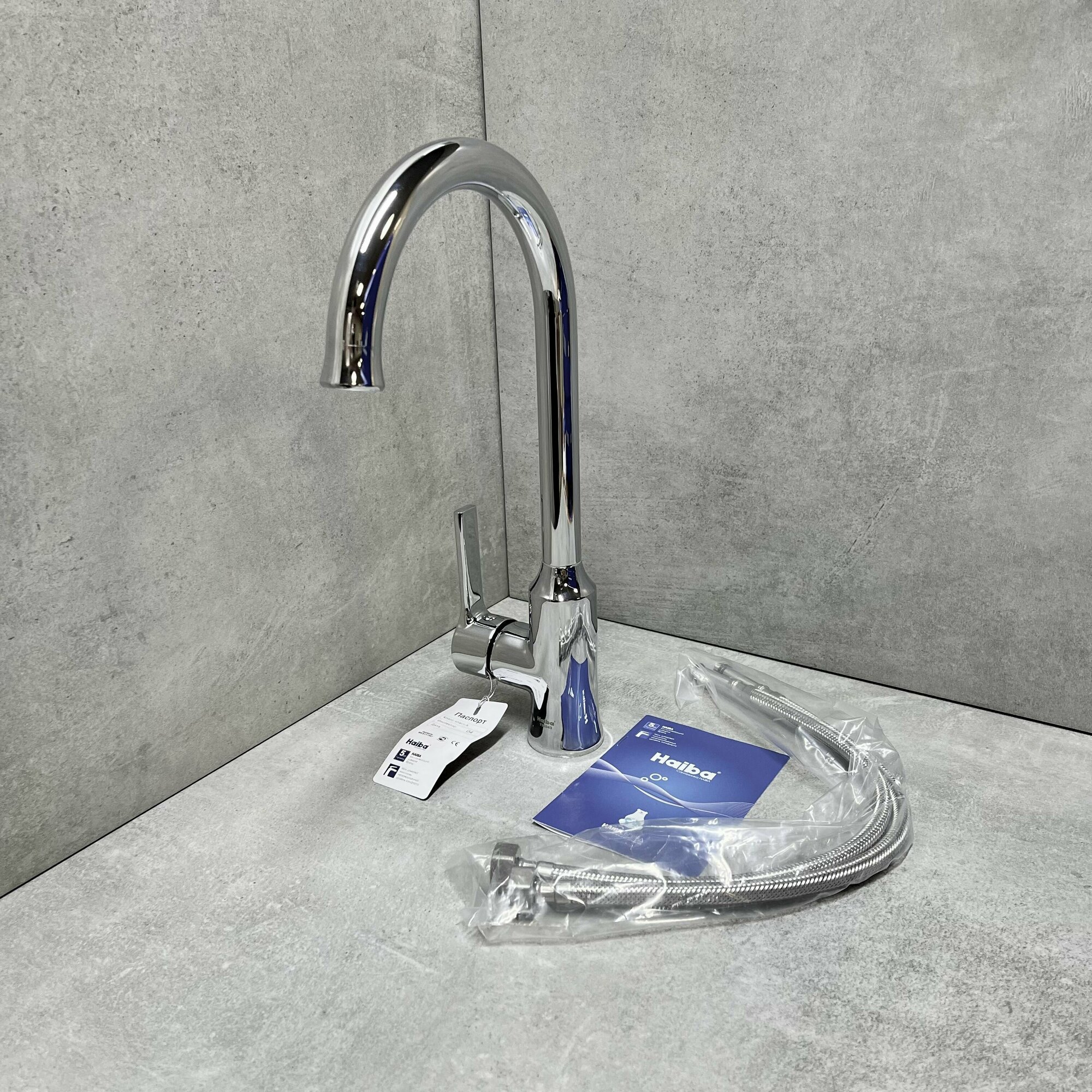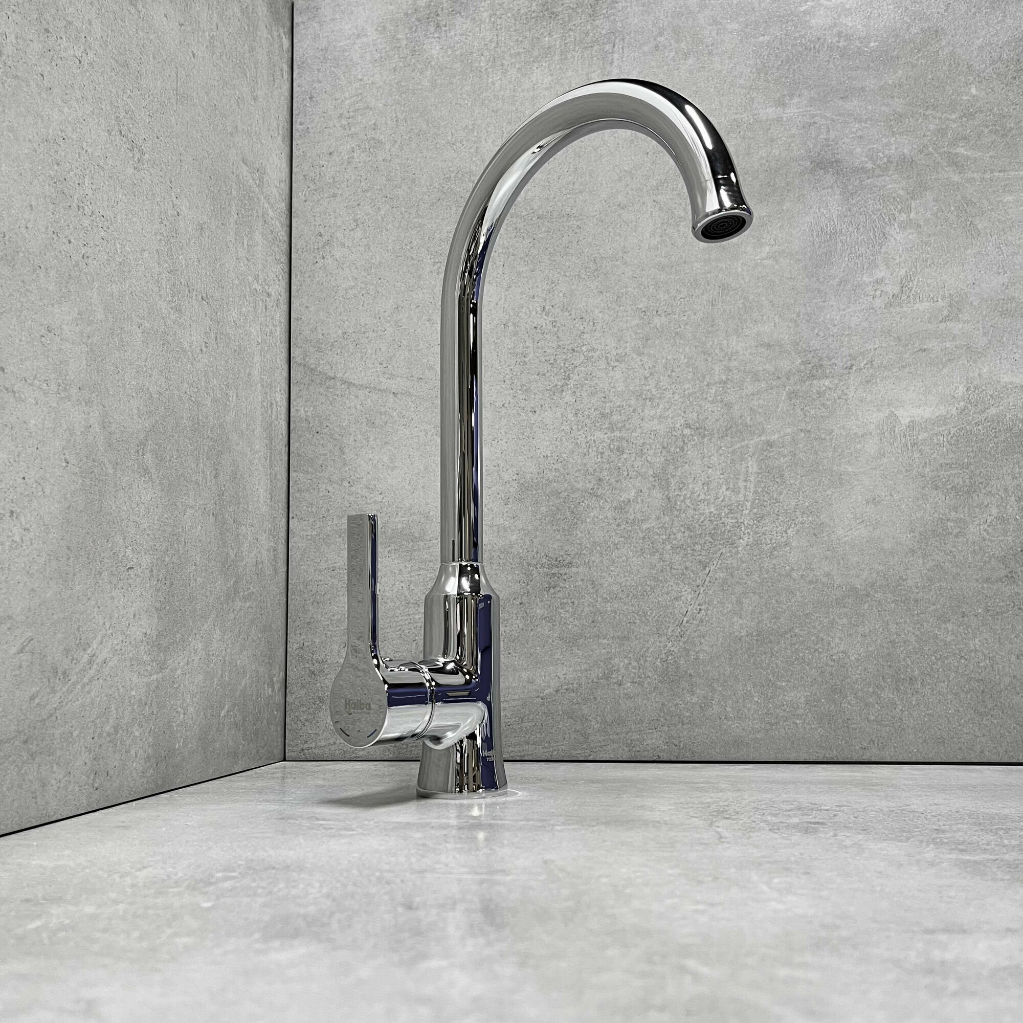 Смеситель для кухни HAIBA HB70652 высокий, поворотный излив с аэратором, материал: латунь, цвет: хром.