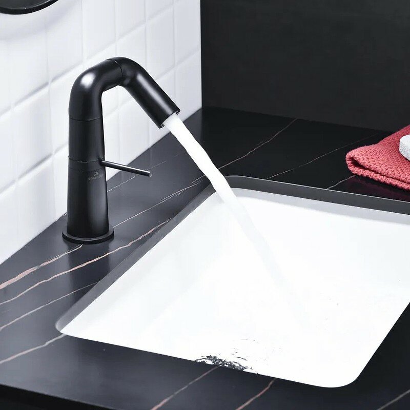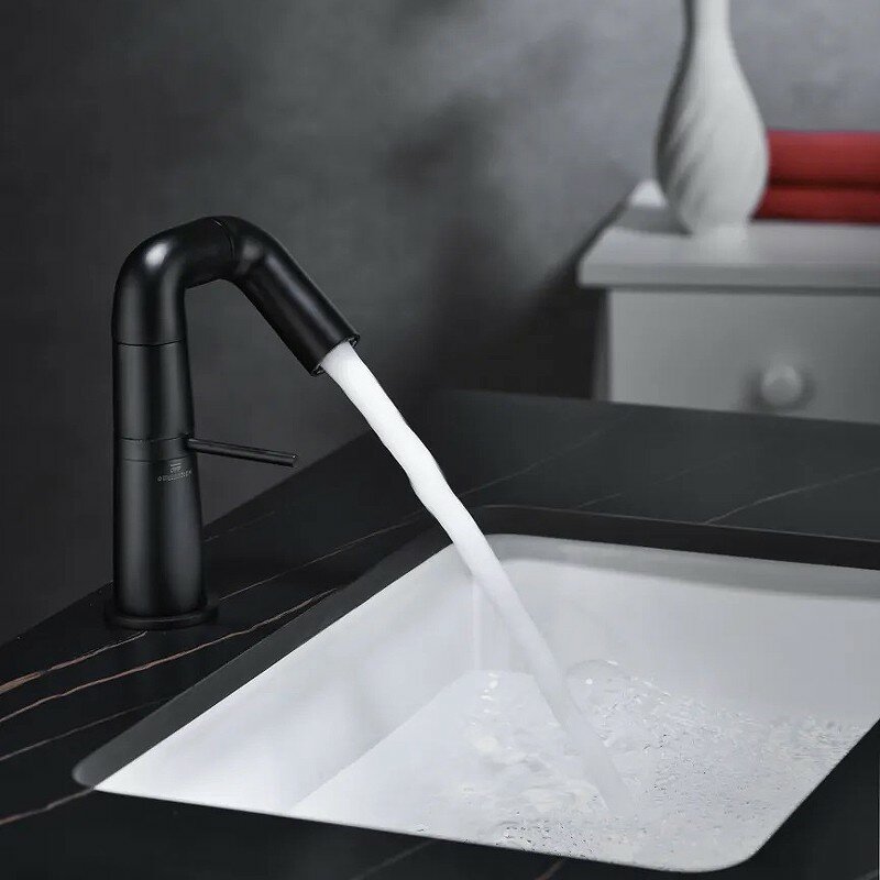 Смеситель для раковины Haiba HB10813-7 с поворотным изливом и прогрессивным картриджем, черный