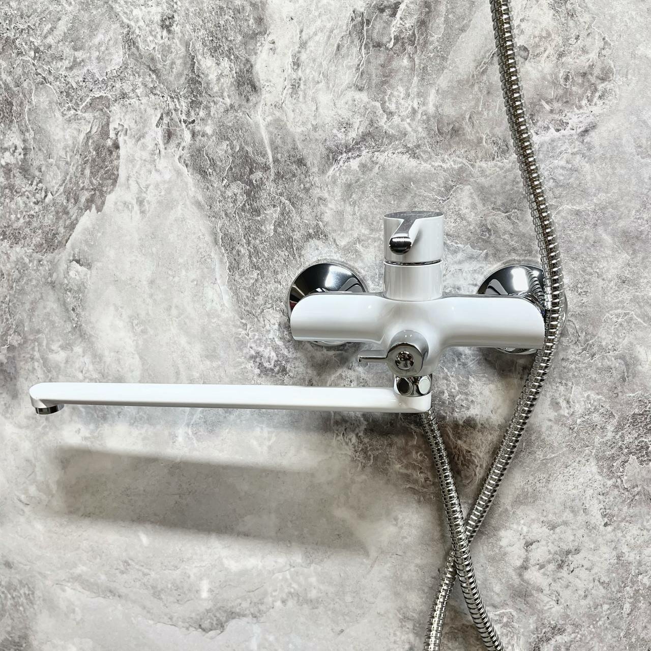 СохранитьСмеситель для ванны Haiba HB22805-8 с длинным изливом и переключателем в корпусе, белый/хром интересное: