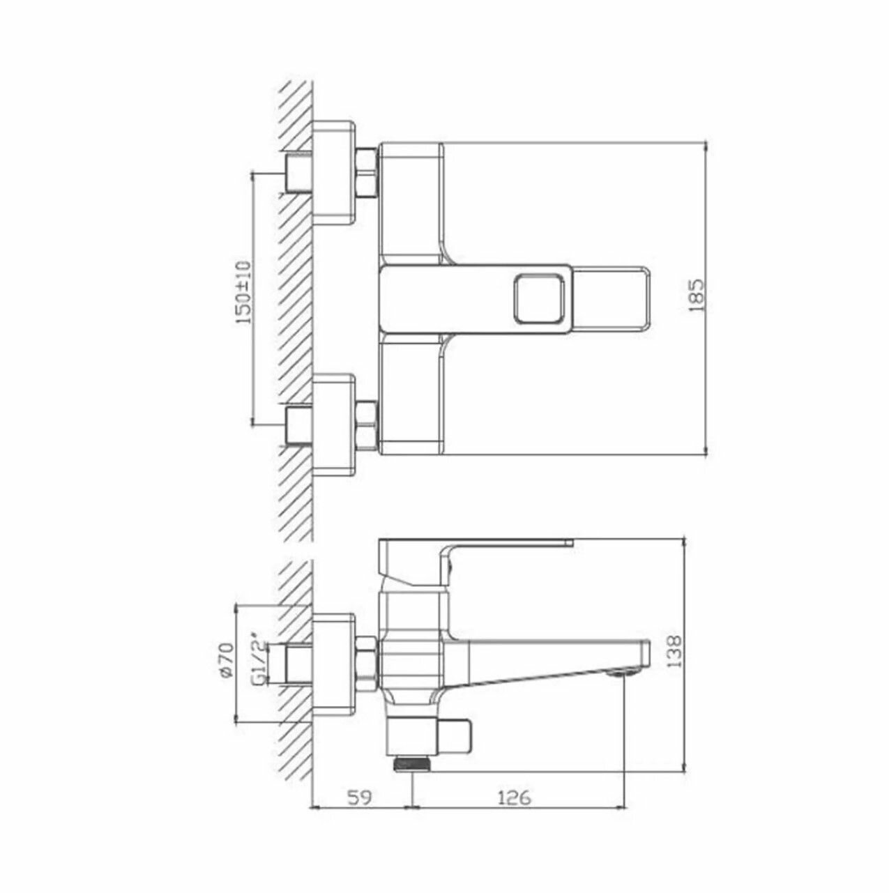 Смеситель для ванны HAIBA HB60615-7, с коротким монолитным изливом, черный, латунь.