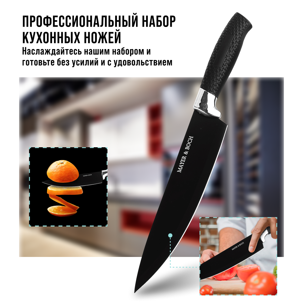Набор кухонных ножей Mayer & Boch 30737 черный интересное: