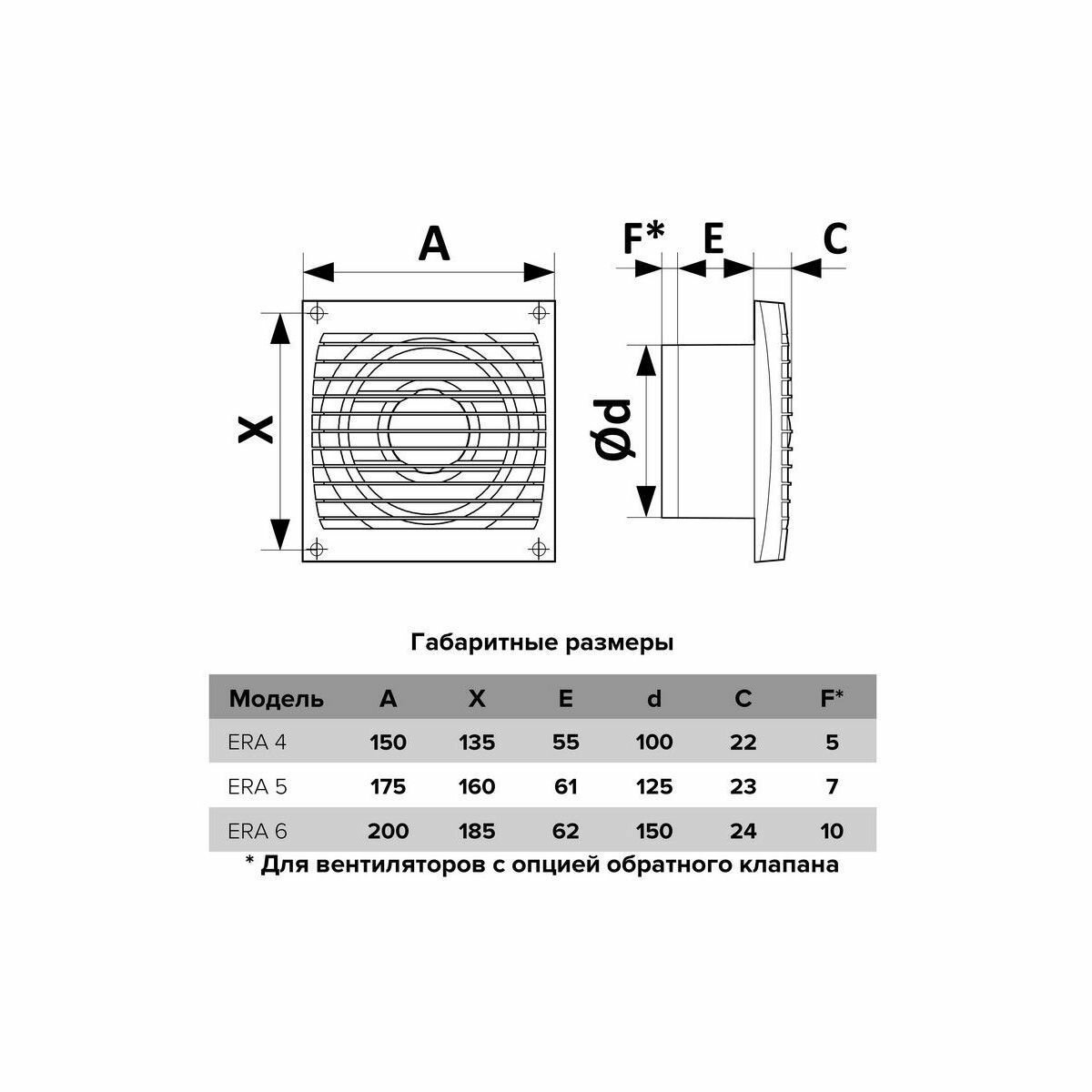 Вентилятор ERA 6S-02 осевой вытяжной с антимоскитной сеткой и тяговым выключателем D 150