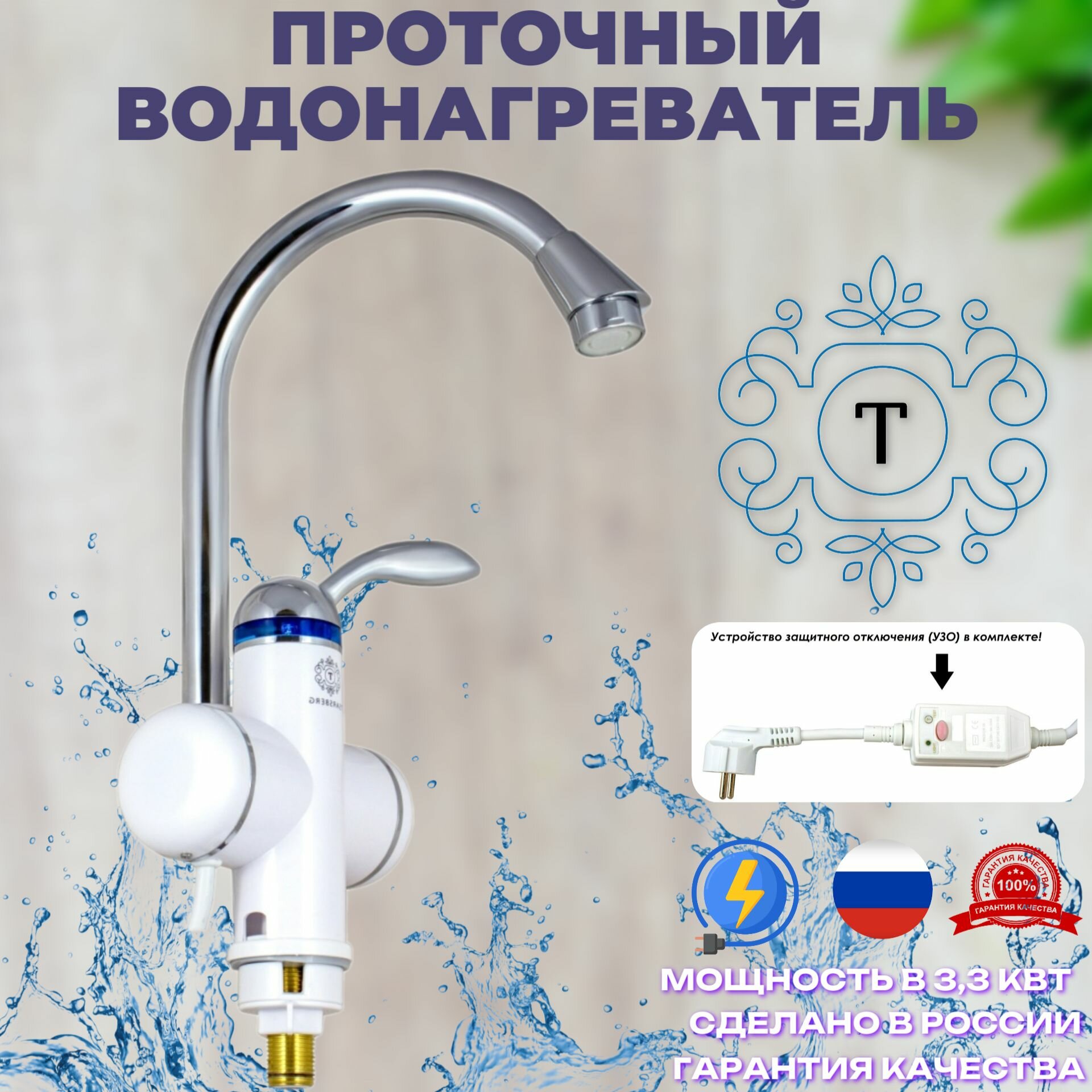 Водонагреватель смеситель проточный с УЗО и защитой от промерзания