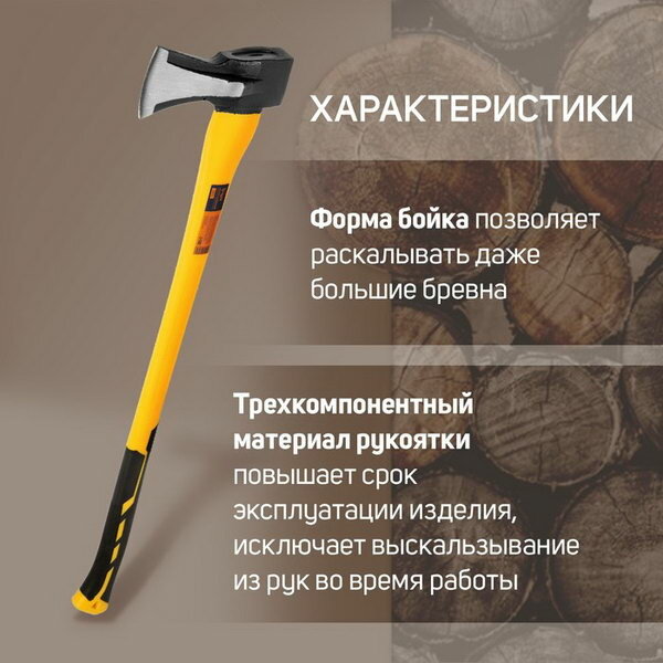 Колун кованый клиновидная форма, фиберглассовое 3К топорище 80 см, 2 кг интересное: