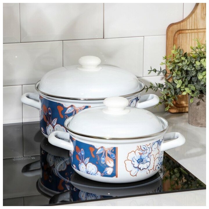 Купить Доляна Набор кастрюль Доляна Flowers, 2 предмета: 2 л, 4,5 л, индукция, цвет белый