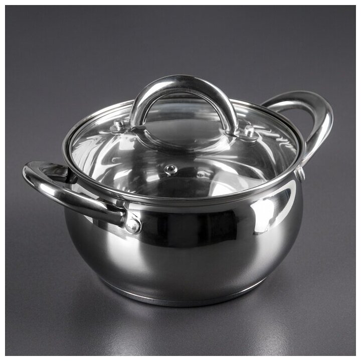 Кастрюля из нержавеющей стали "Гиперион", 3.5 л, d=20 см, стеклянная крышка