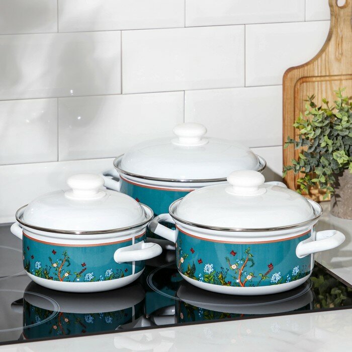 Купить Набор кастрюль Доляна Garden, 3 предмета: 1,5 л, 2 л, 3 л, индукция, цвет белый