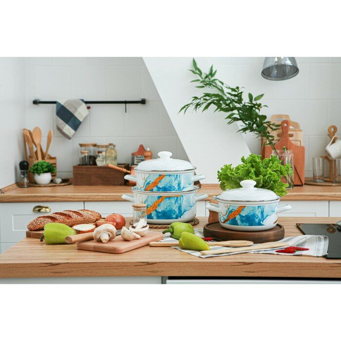 Набор кастрюль Доляна Ocean, 3 предмета: 2 л, 3 л, 4,5 л, индукция, цвет белый интересное: