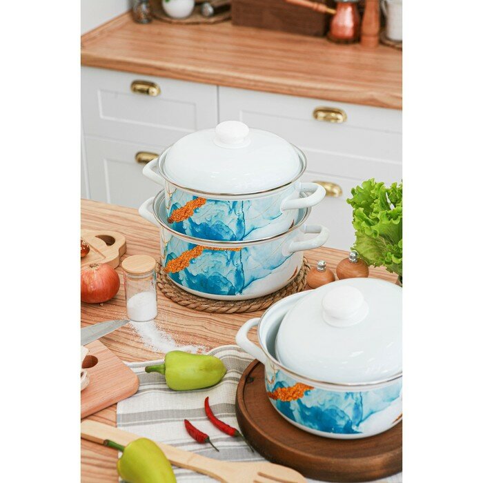 Купить Доляна Набор кастрюль Доляна Ocean, 3 предмета: 2 л, 3 л, 4,5 л, индукция, цвет белый
