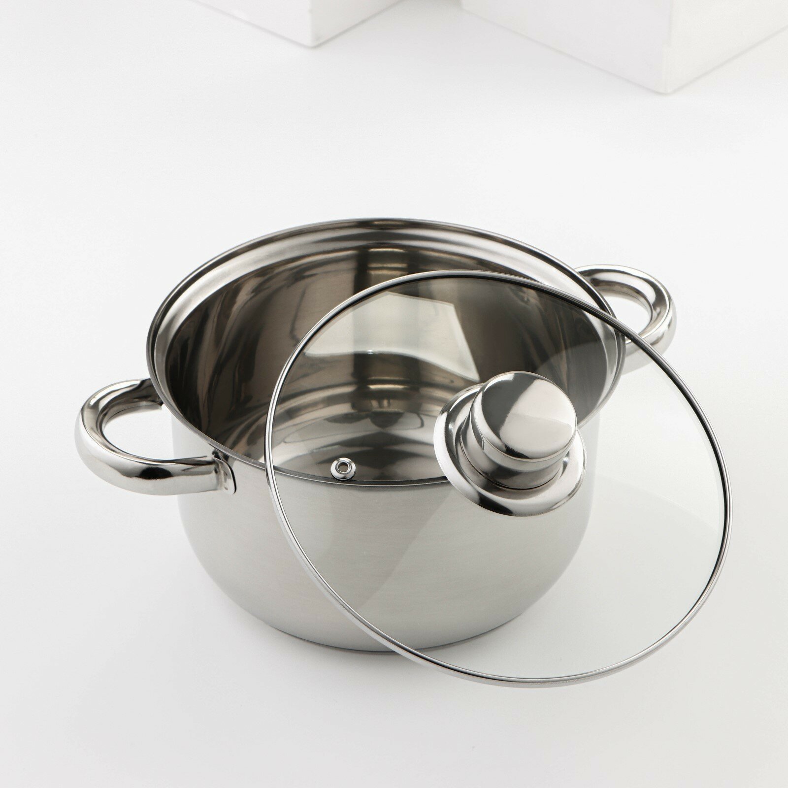 Набор посуды из нержавеющей стали Доляна "Классика", 8 предметов: ковш 1.5 л, 2 кастрюли 2/3 л, сковорода d=24 см, крышки, стенки 0.3 мм, дно 5 мм