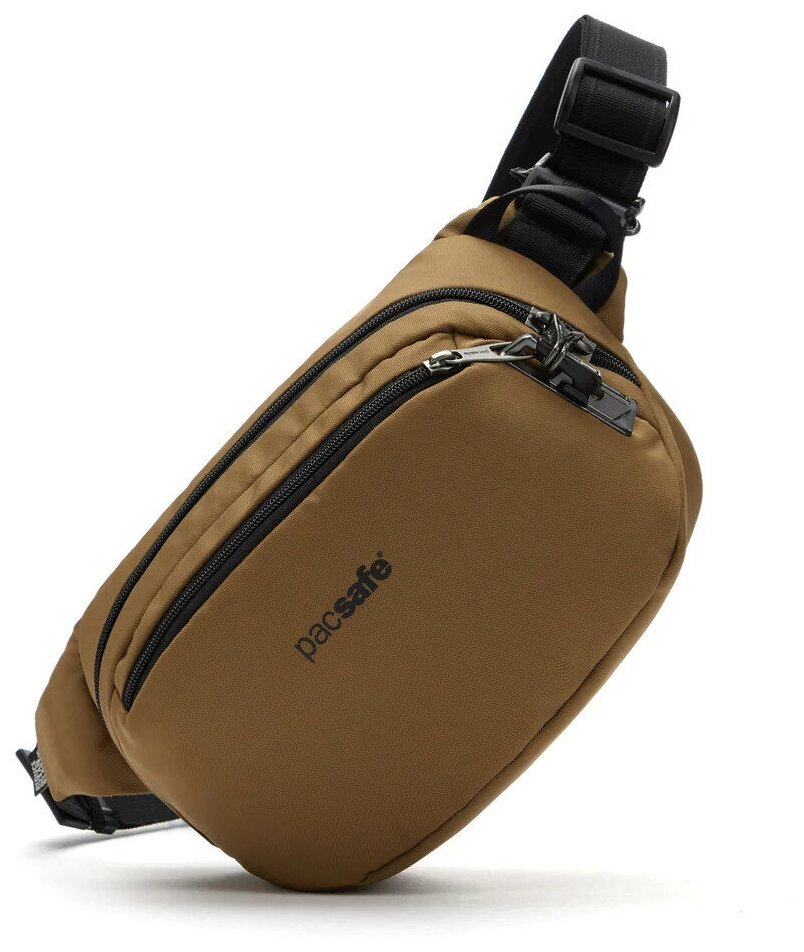 Сумка на пояс антивор Pacsafe Vibe 100, коричневый, 4 л. интересное: