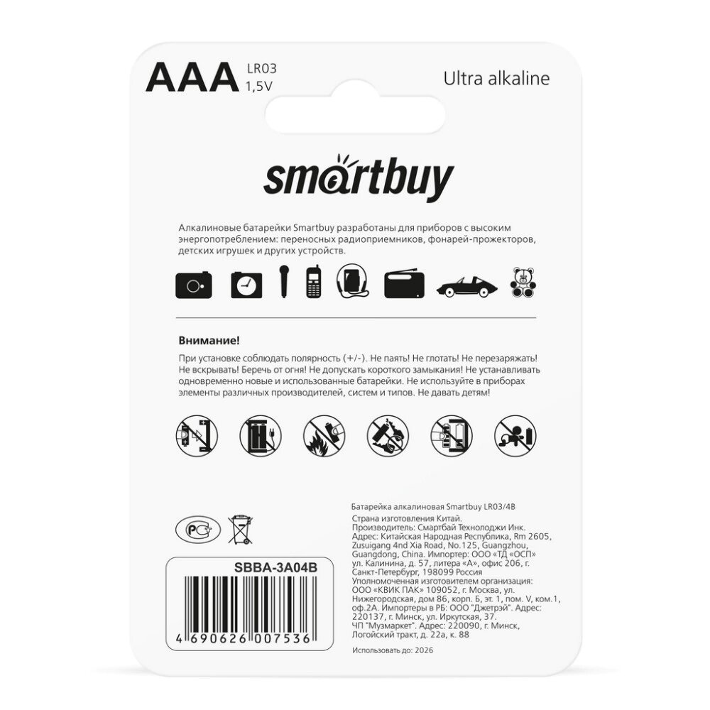 Батарейка SmartBuy AAA LR03 Ultra Alkaline, в упаковке: 4 шт.