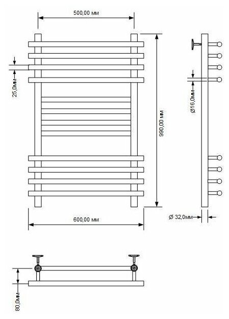 Водяной полотенцесушитель Aquanet Mauro(г2) 800x500