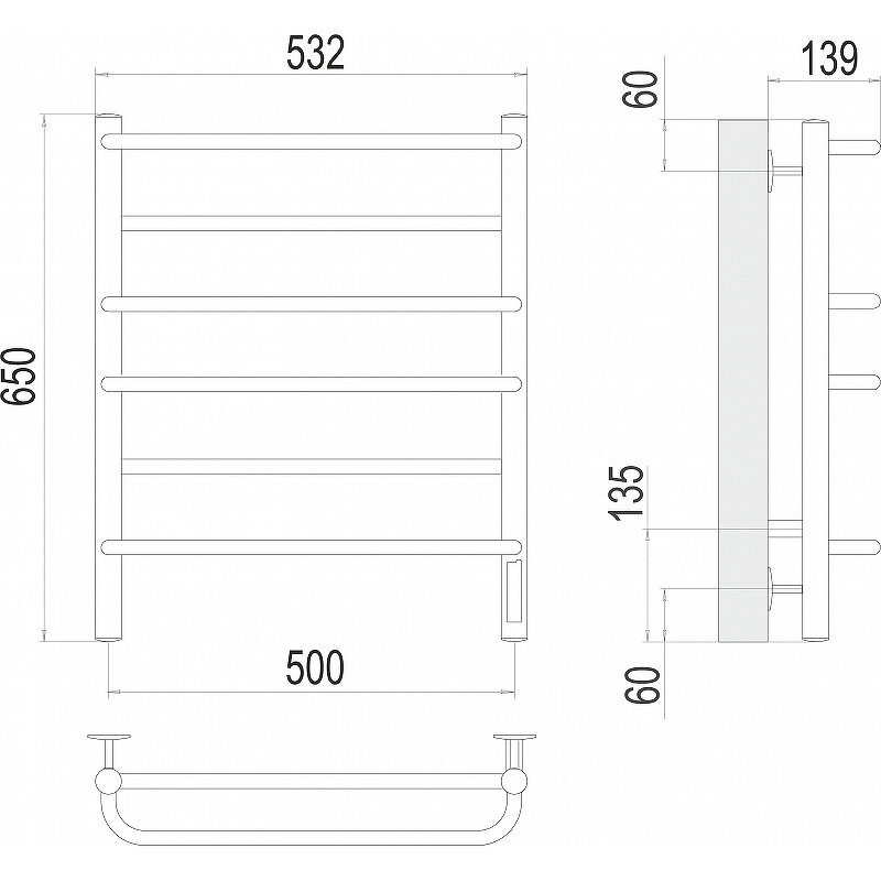 Купить Евромикс (скрытая проводка) электрический полотенцесушитель TERMINUS (532 мм / 650 мм / 500 мм)