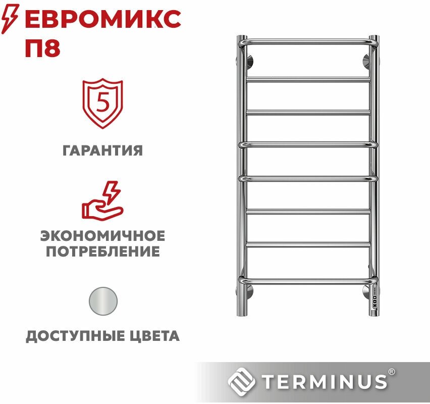 Полотенцесушитель электрический TERMINUS (Терминус) Евромикс П8 400х850 мм, сверхпрочная пищевая нержавеющая сталь, диммер 5-ого поколения Quick Touch, гарантия 5 лет/ Электрический полотенцесушитель с терморегулятором