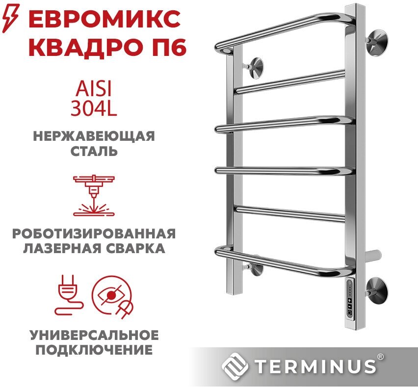 Купить Евромикс квадро П6 400х650 Электро (quick touch) Полотенцесушитель TERMINUS