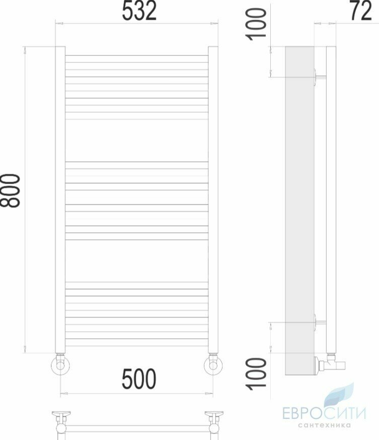 Водяной полотенцесушитель Terminus Аврора П16 500х800 4670078529312 Хром, нижнее подключение, G 1/2" ВР, с угловым соединением