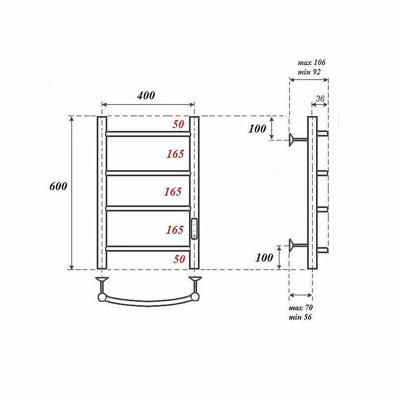 Полотенцесушитель электрический 400x600 POINT Афина (PN04846 П4) диммер справа