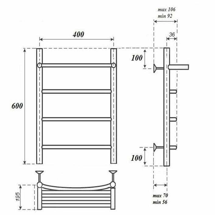 Полотенцесушитель водяной 600x432 Point Афина П3 PN04146P