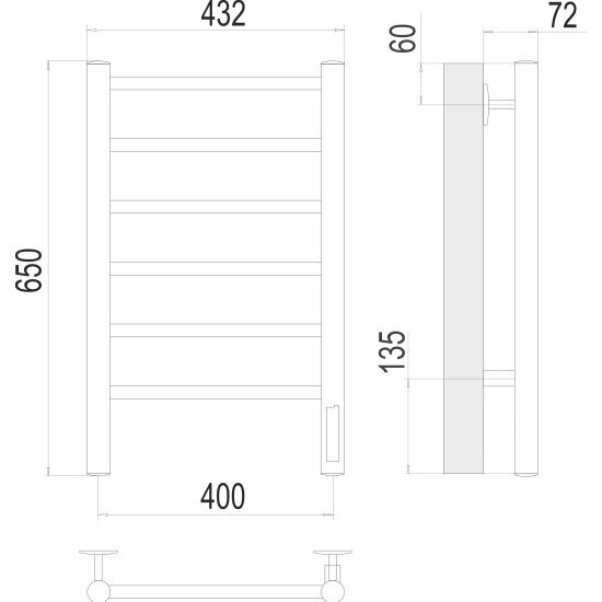 "Аврора" (скрытая проводка) электрический полотенцесушитель TERMINUS (432 мм / 650 мм / 400 мм)