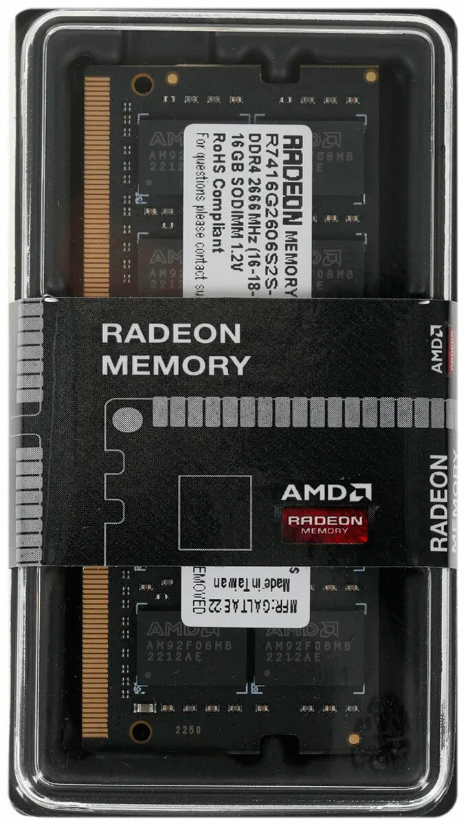Оперативная память AMD Radeon R7 Performance Series R7416G2606S2S-U DDR4 - 1x 16ГБ 2666МГц, для ноутбуков (SO-DIMM), Ret