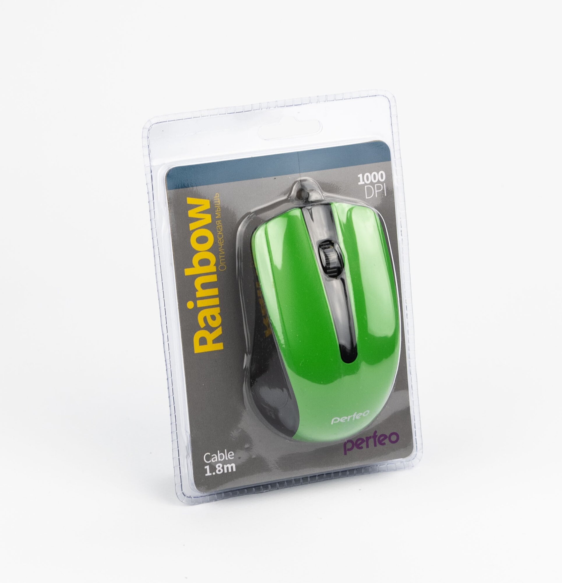 Купить Мышь проводная Perfeo Rainbow USB/DPI 1000/3 кнопки/1.8м черно-зеленая